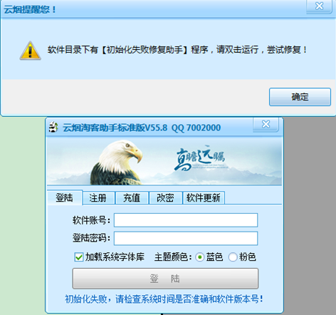 如果打开软件之后,无法登录,提示初始化失败,请按照下面的方法操作